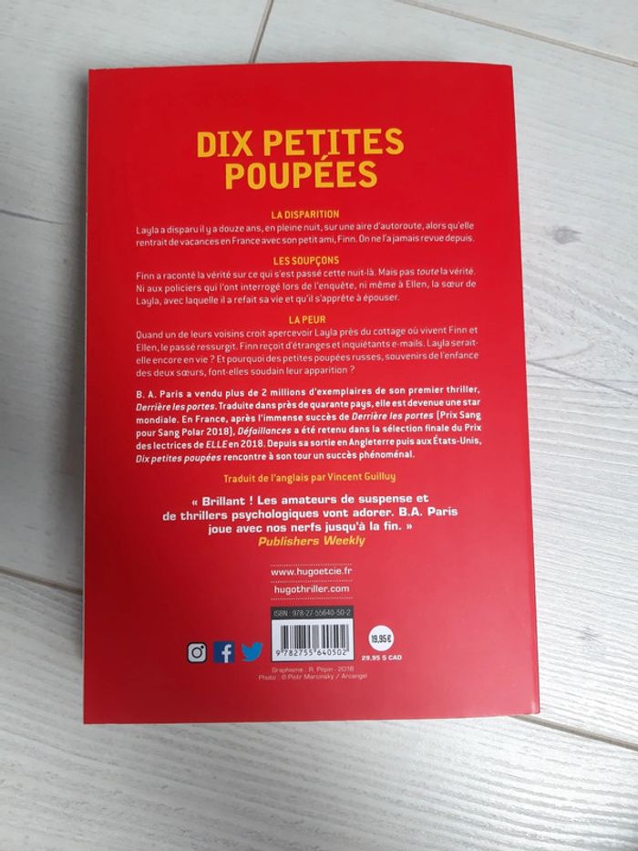 Dix petites poupées B.A. Paris Jamais lu, neuf, édition hugo thriller #ellena50livres