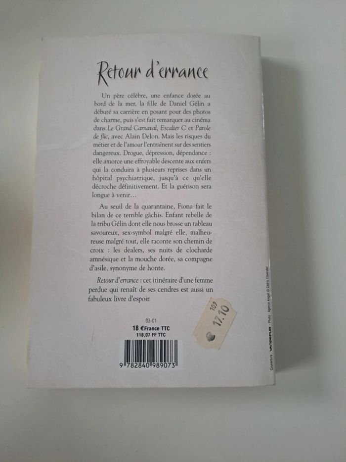Retour d'errance Autrice: Fiona Gélin Edition: Michel lafon Lu une fois #ellena50livres #livre #michellafon