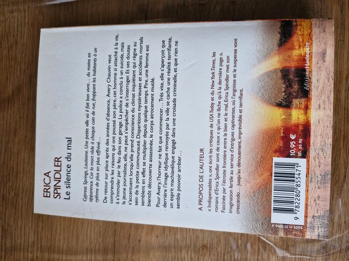 Roman "Le silence du mal" de Erica Spindler Genre thriller, mystère En format broché Pas de pages abîmées, annotées ou déchirées. Elles n'ont pas encore jaunies Juste le coin en bas de face qui a pris une petite chute, et un impact a l'arrière sur la couverture (voir le détail en photos)