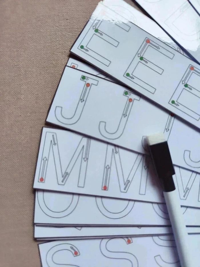 Carnet de 27 cartes pour apprendre à tracer les lettre de l'alphabet Montessori