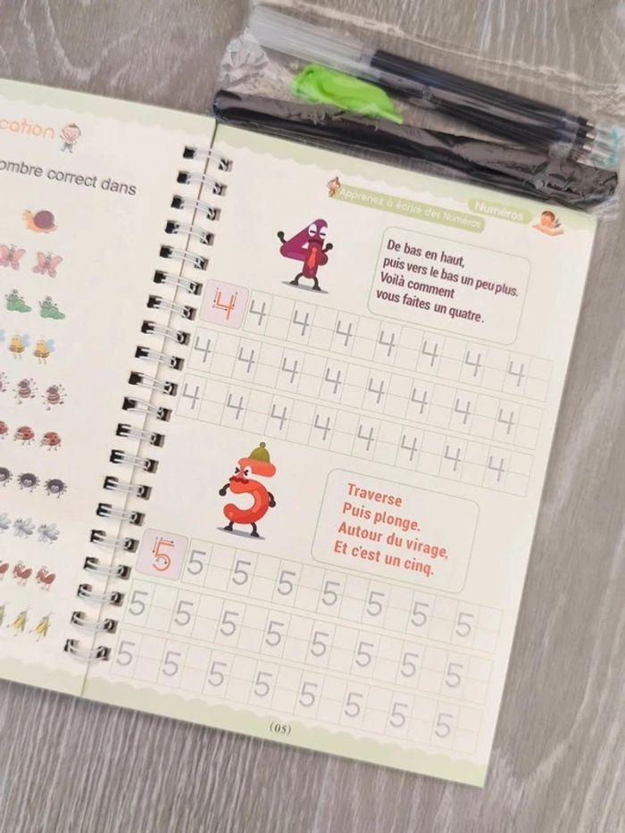 📍Cahier d'écriture magique NEUF. 📍Un bon moyen d'aider votre enfant à améliorer son écriture grâce aux rainures innovantes qui guident le mouvement du poignet et du stylo pour former des lettres. 📍Aide les enfants à développer leur coordination oeil-main et leur précision, pour une écriture plus fluide et plus nette. 📍Pas de frustrations, les résultats obtenus sont immédiats et encouragent les enfants à continuer à écrire et à développer leur confiance en eux. Contient : 📍1 cahier 19 x 13,5 cm 📍1 stylo et 5 recharges 👉Pour trouver d'autres activités c'est par ici : 🔎#elisabethdesignTracerEcriture 🔎#elisabethDesignAlphabet 👉Pour trouver d'autres livrets c'est par ici : 🔎#elisabethdesignLivret 📫⏳ Envoi rapide et soigné le jour même de l'achat dans la mesure du possible! 🤝 Frais de port ajusté au plus bas.