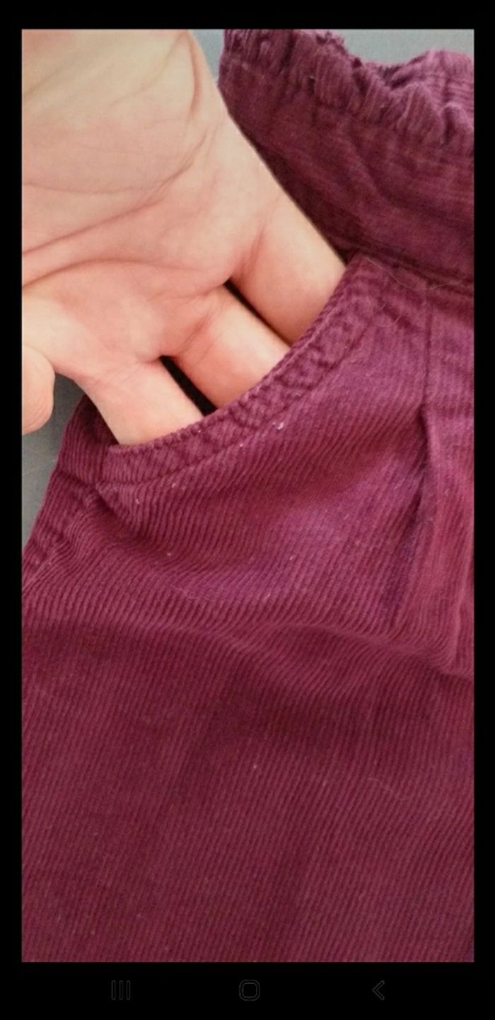 Porté plusieurs fois. Pantalon en velour bordeau. 2 vraies poches devant et taille élastique.