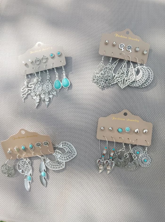 Boucles d'oreilles fantaisie Le lot de 4 plaquettes de boucles d'oreilles soit 24 paires ! NEUF