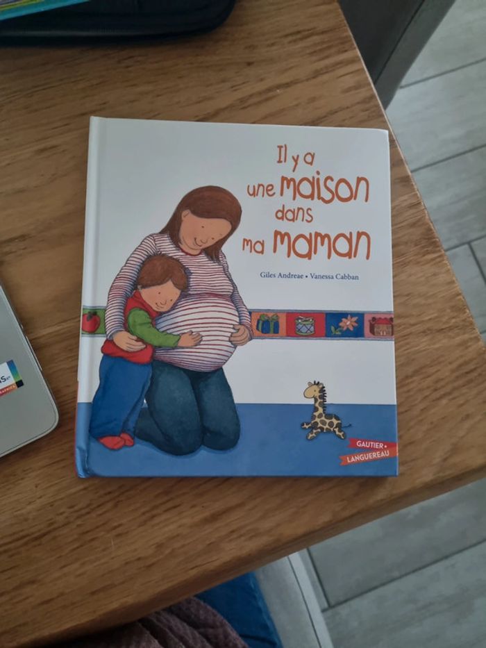 Livre il y a une maison dans ma maman Très bon état Explique très bien au premier enfant la grossesse et les symptômes de celle ci