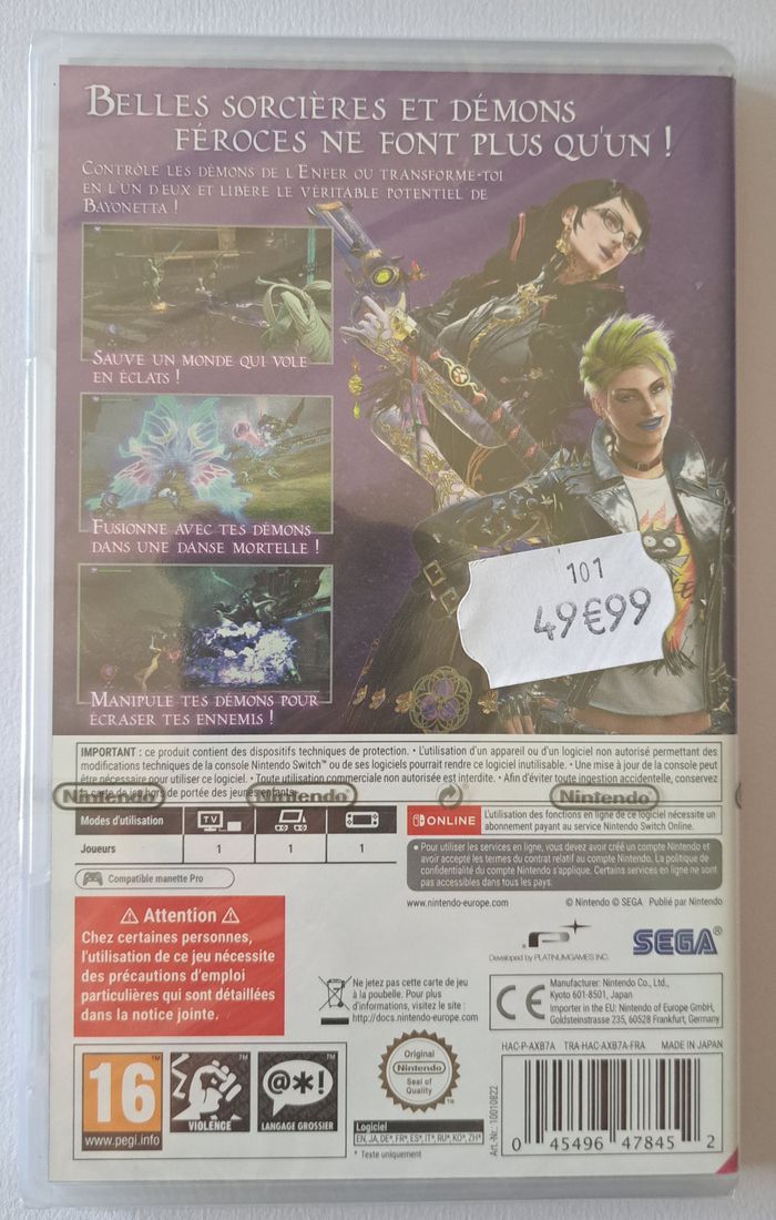 🎮 Nintendo Switch : Bayonetta 3 🛠️ État : neuf, blister scellé jamais ouvert, boite française (voir photos pour plus de détails) 📦Envoi rapide, suivi et soigné 🤝 Vente directe possible sur Berck (62600) ➡️ Intéressé(e) par plusieurs articles ? Regroupez vos achats pour économiser sur les frais de port ! 📩 Besoin d'infos supplémentaires ? Je suis dispo, n'hésitez pas ! Broc'Ant – Jouets • Jeux Vidéo • Brocante • Objets de Collection #brocant #brocantswitch #vintage #collection #retro #ancien #jeuxvideo #videogame #retrogaming #console #nintendo #switch #bayonetta