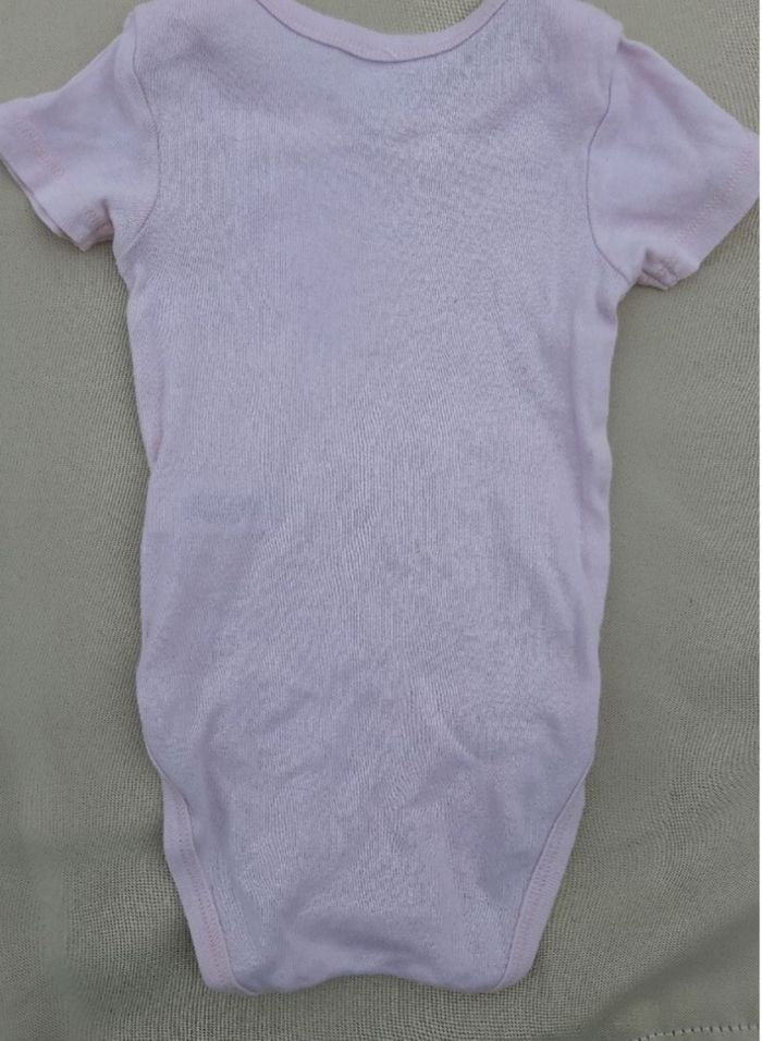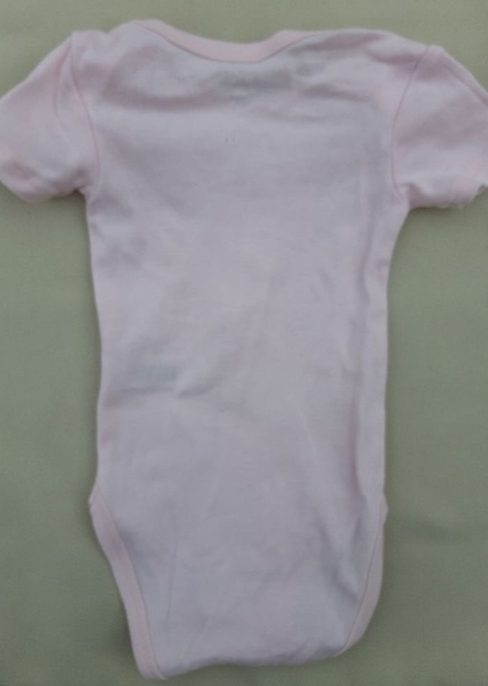 Le body rose uni a 2 petits trous dans le dos dus à l'étiquette de prix...