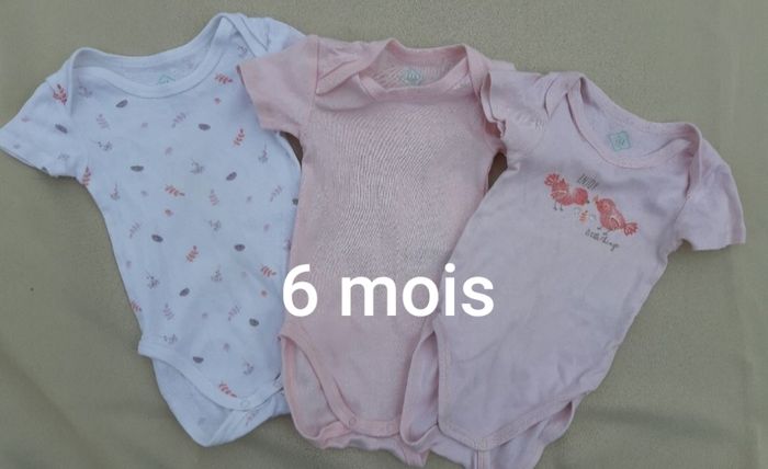 lot de 3 bodies à manches courtes, de la marque TEX baby, en taille 6 mois