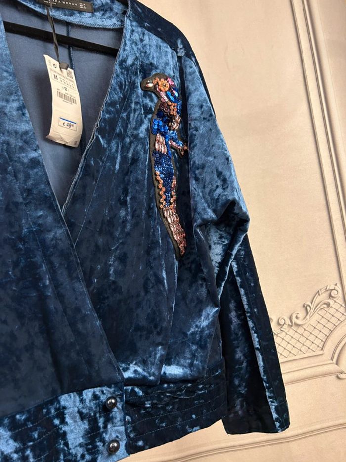 Gilet Zara bleu velours L neuf - photo numéro 2