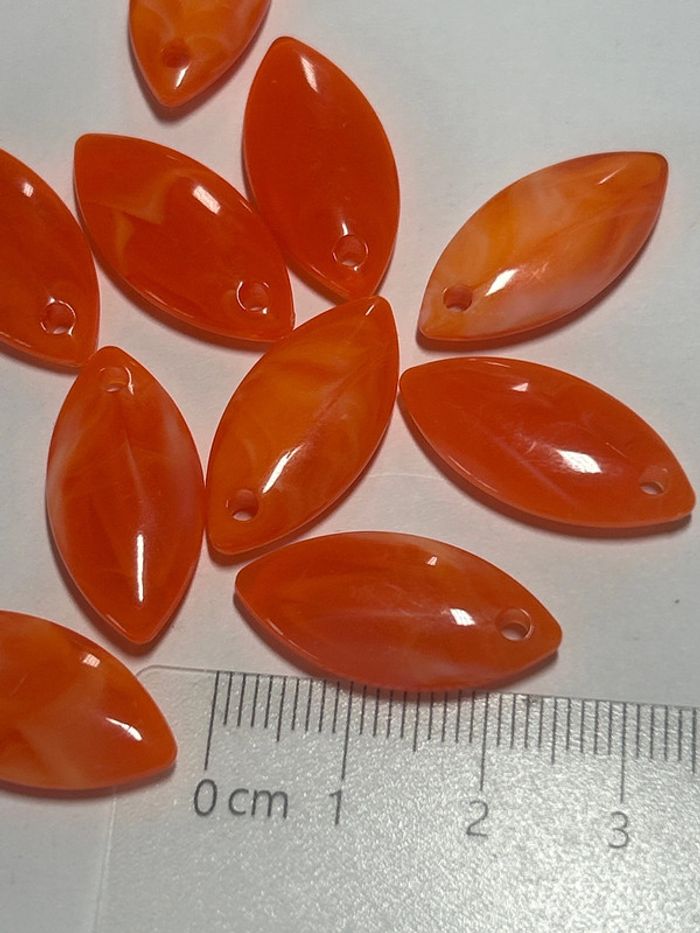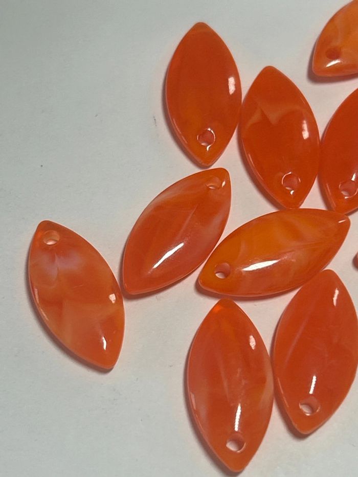 B5, 10 breloques amandes marbrées acrylique orange