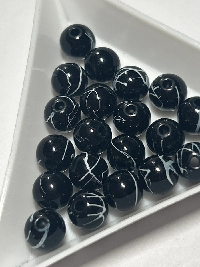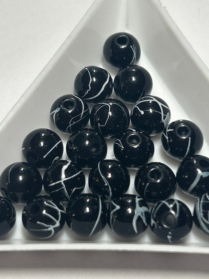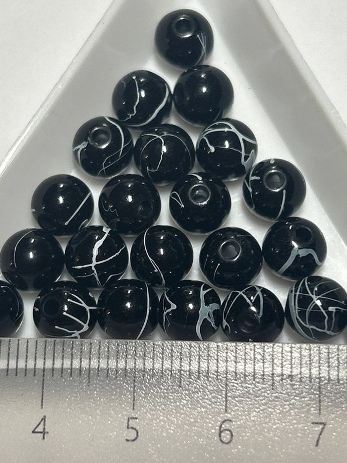 A814, 22 perles noires dripping blanc 7mm acrylique - photo numéro 4