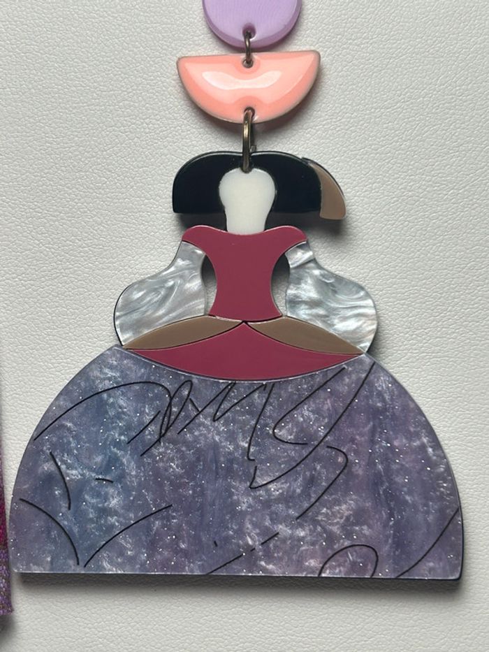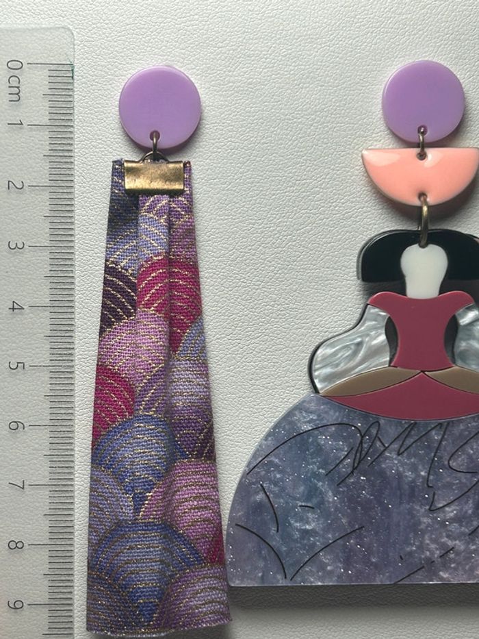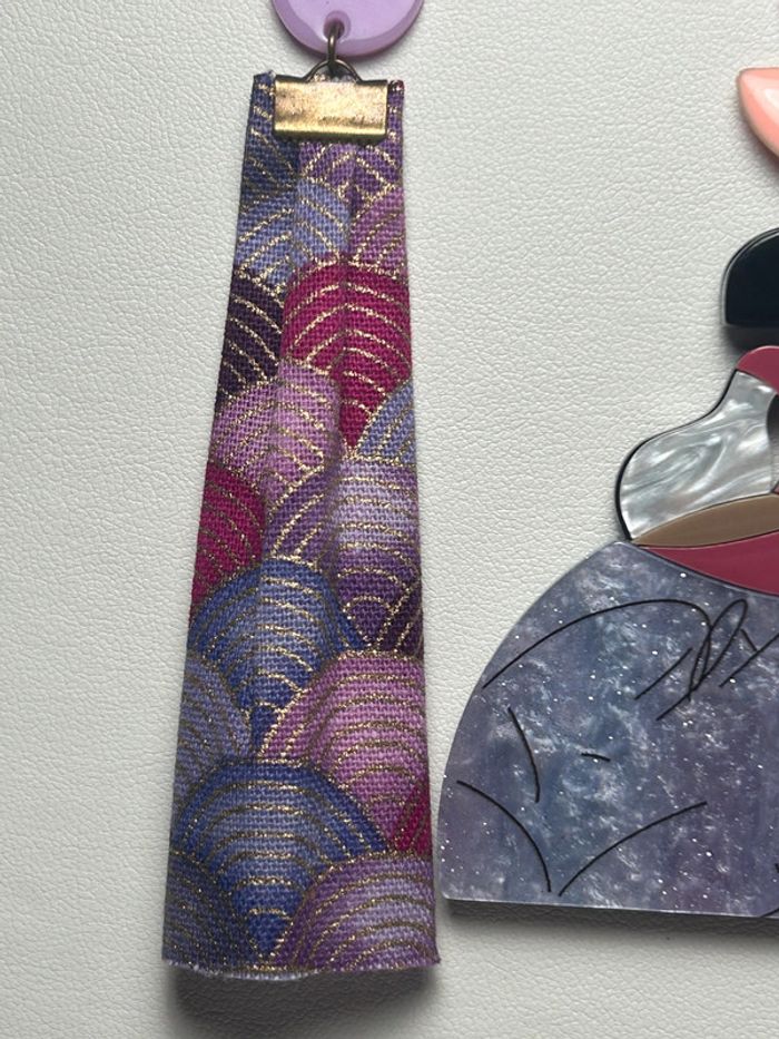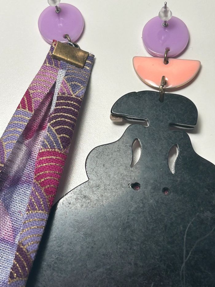 Bénéficiez de -25% dès la 2ème paire de boucles d'oreilles Ces boucles d’oreilles uniques sont nées d’une broche en acrylique transformée avec soin en breloque principale. Composée de plusieurs couches d’acrylique pour créer un effet de relief captivant, elle est accompagnée d'une demi-lune émaillée en guise de breloque intermédiaire. Le tout est sublimé par un morceau de tissu imprimé, minutieusement plié pour apporter de la texture et du contraste. Un assemblage d'apprêts en acrylique vient compléter cette composition audacieuse et légère, parfaite pour celles et ceux qui aiment porter des pièces originales, graphiques et pleines de caractère. Remise : -25% dès la deuxième paire de boucles d'oreilles #bouclesdoreilles #bijouxoriginaux #créationartisanale #bijouxacrylique #faitmain #bijouxfaitmain #stylegraphique #bijouxdartiste #accessoiresuniques #créatricefrançaise #bouclescolorées #modeéthique #bijouxdurables #upcyclingbijoux #brochetransformée #tissuimprimé #bijouxfantaisie #bijouxtendance #designcoloré #reliefacrylique #earrings #handmadejewelry #acrylicjewelry #statementearrings #colorfulearrings #artjewelry #graphicstyle #uniqueaccessories #textilejewelry #mooncharm #layeredacrylic #fabricfolding #sustainablefashion #repurposedjewelry #boldstyle #contemporaryjewelry #creativeearrings #jewelryinspiration #popdesign #artistmade #oorbellen #handgemaaktsieraad #uniekesieraden #acrylsieraden #kleurrigedesign #kunstenaarsjuwelen #origineleoorbellen #stoffenoorbellen #halvemaanbedel #laagjesacryl #duurzamemode #upcycledsieraden #statementoorbellen #ambachtelijksieraad #creatiefontwerp #kleurrigestijl #textielsieraad #bijzondereoorbellen #handgemaaktmetliefde #moderneoorbellen