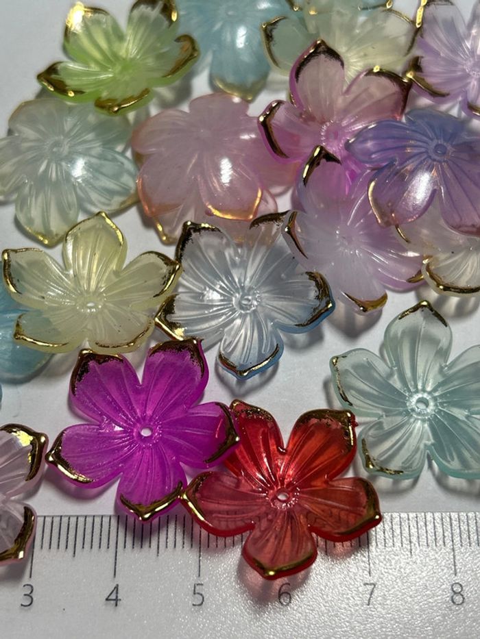 B63, 20 perles fleurs multicolores 23mm - photo numéro 1