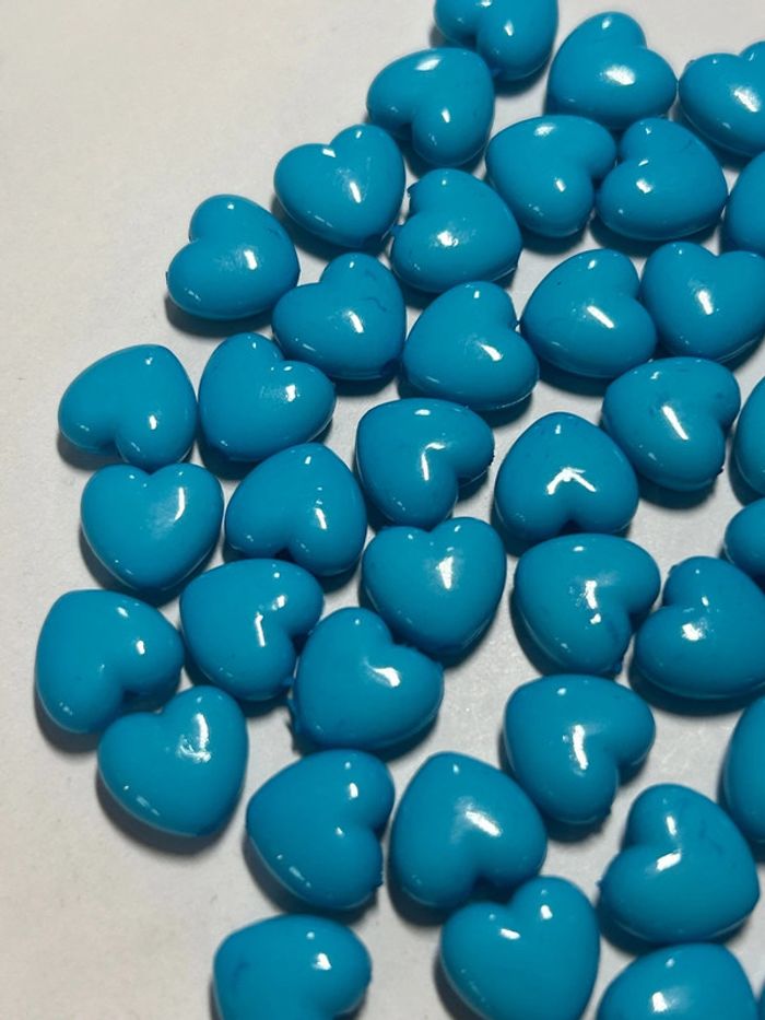 B53, 50 perles cœurs turquoises 10mm plastique - photo numéro 4