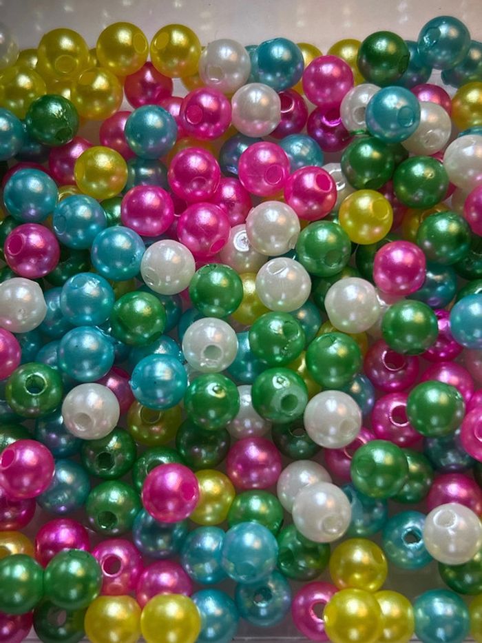 A453, Panaché de + de 200 perles nacrées 5 couleurs 5mm plastique - photo numéro 1
