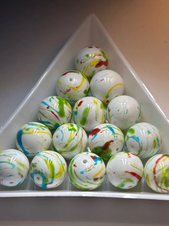 A390, 15 perles verre 10mm, blanches et dripping multicolore - photo numéro 2