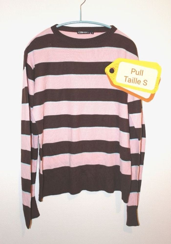 A vendre pull de taille S, couleurs : rose, marron et bleu. En bon état.