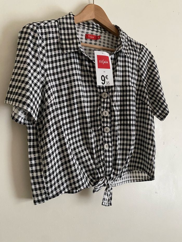 🌿Chemise courte à carreaux 🌿Neuf avec étiquette 🌿Taille 40 🌿100% viscose 🌿Prix magasin 9.95€ 1A #chemise #chemise40 #neuf #neufavecetiquette #chemisemanchecourte #blanc #noir #haut #moderne #tendance #collection #serie #femme #femme40 #soleil #ete #vetement #elegant #moderne #chic #mode #taille40 #chemisetissaia #tissaie #marque #tissaianeuf