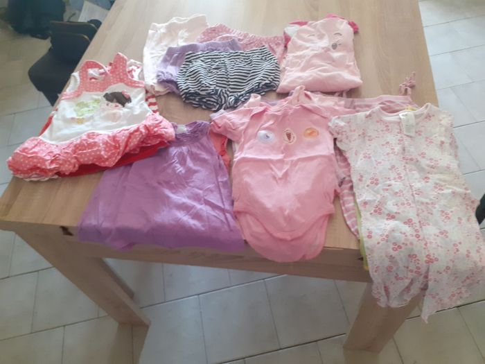 Lots 9 mois 3 combi body+1 pyjama + 6 body + 2 débardeur + 2 robes + 3 shorts + 1 legging