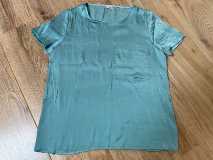 Manches courtes. Coloris bleu vert. Poche plaquée