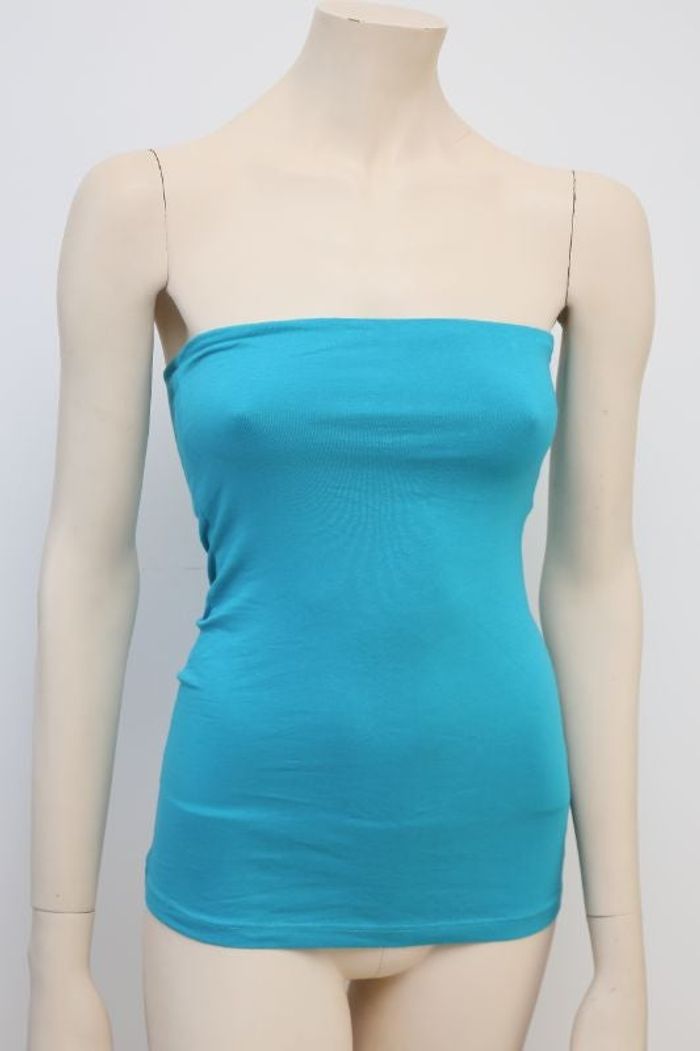 Taille 34. Une partie du t-shirt se rabat sous la poitrine. Porté une fois! La couleur tire plus sur un bleu vert par rapport aux photos..