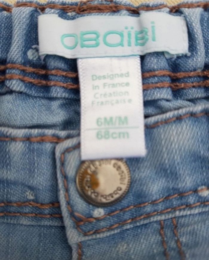 Ensemble été fille (t-shirt manches courtes rose fuchsia + short en jean bleu délavé) - Obaïbi - 6 mois - photo numéro 5