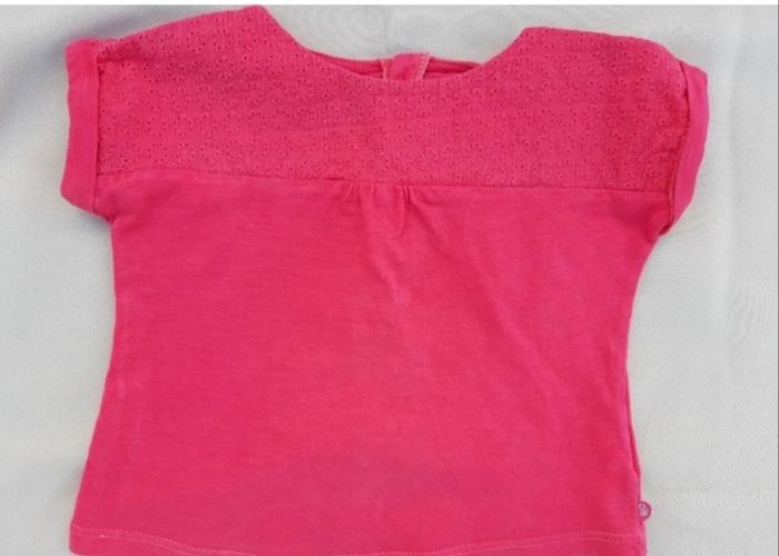 ensemble comprenant : - 1 t-shirt à manches courtes, de couleur rose fuchsia, de la marque Obaïbi, en taille 6 mois 3 boutons dans le dos En très bon état. - 1 short en jean bleu délavé, de la marque Obaïbi, en taille 6 mois En bon état. Vêtements de la taille naissance à la taille 4 ans disponibles. Remise en main propre possible dans le secteur de Pont-Audemer / Beuzeville / Pont-l’Evêque / Epaignes. Envoi possible.