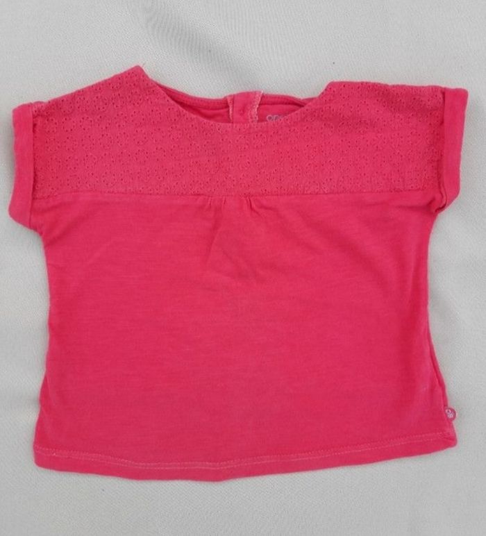 Ensemble été fille (t-shirt manches courtes rose fuchsia + short en jean bleu délavé) - Obaïbi - 6 mois - photo numéro 2
