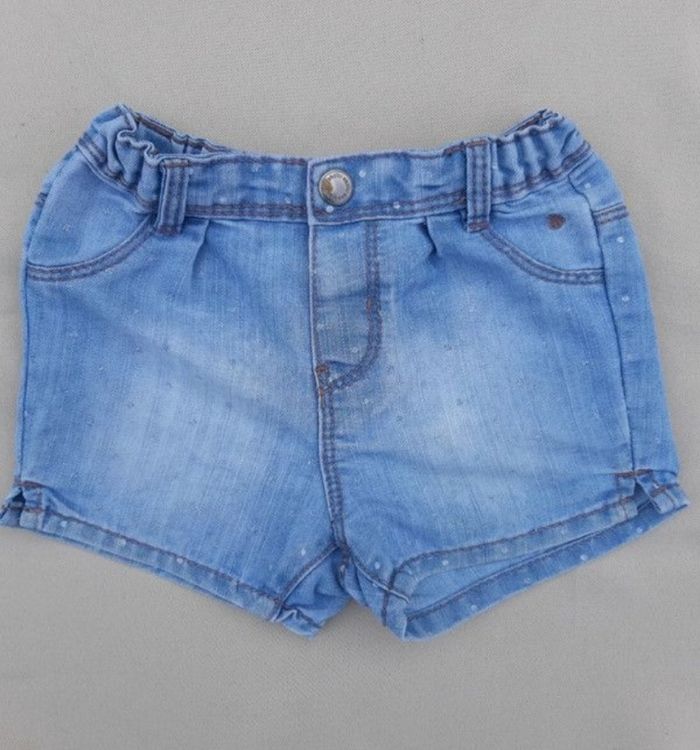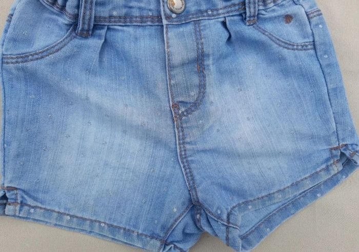 Ensemble été fille (t-shirt manches courtes rose fuchsia + short en jean bleu délavé) - Obaïbi - 6 mois - photo numéro 9