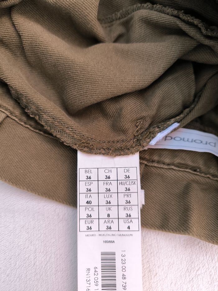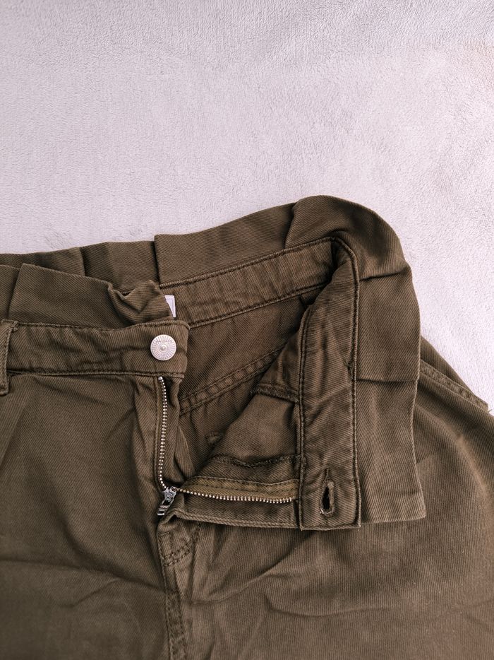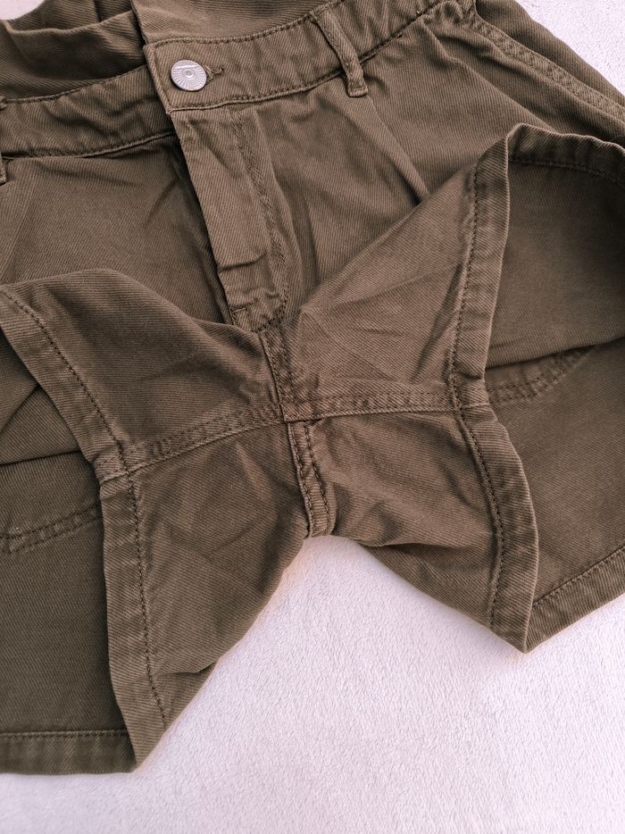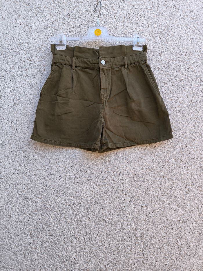 Short taille haute Marque Promod Taille 36 • Coloris kaki • Fermeture par fermeture éclair et bouton • Taille froncée • 4 poches • Coton Largeur taille non étirée : 35 cm Largeur taille étirée au maximum : 37 cm Longueur totale : 37 cm Longueur entrejambe : 9 cm Largeur bas des jambes : 29 cm En très bon état #evelyne_taille_36