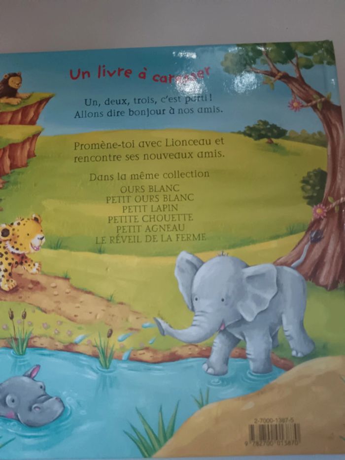 Lot de 2 livres , les animaux de la savane avec animaux tout doux à carresser et l'autre coucou au zoo avec volets à soulever, très bon état