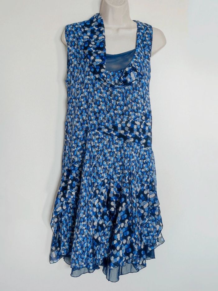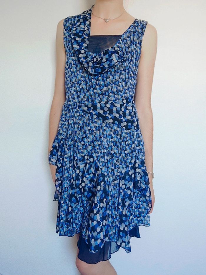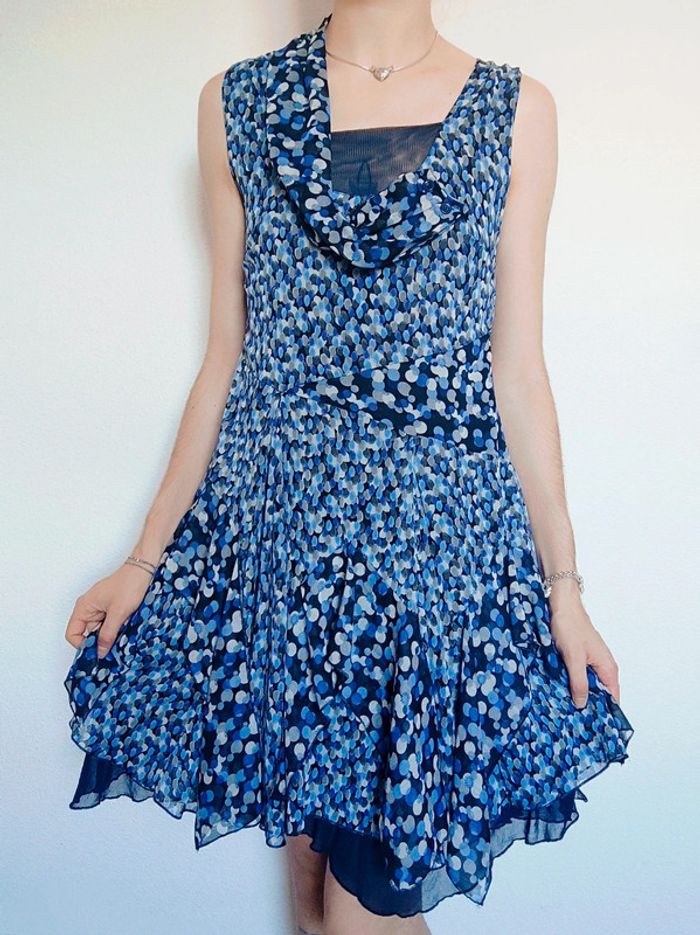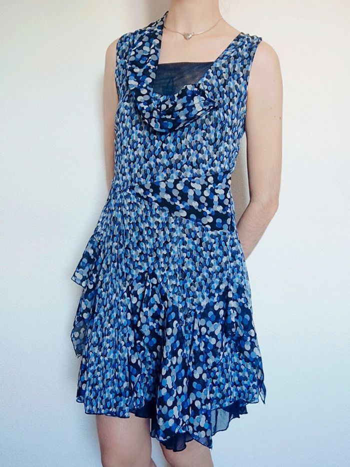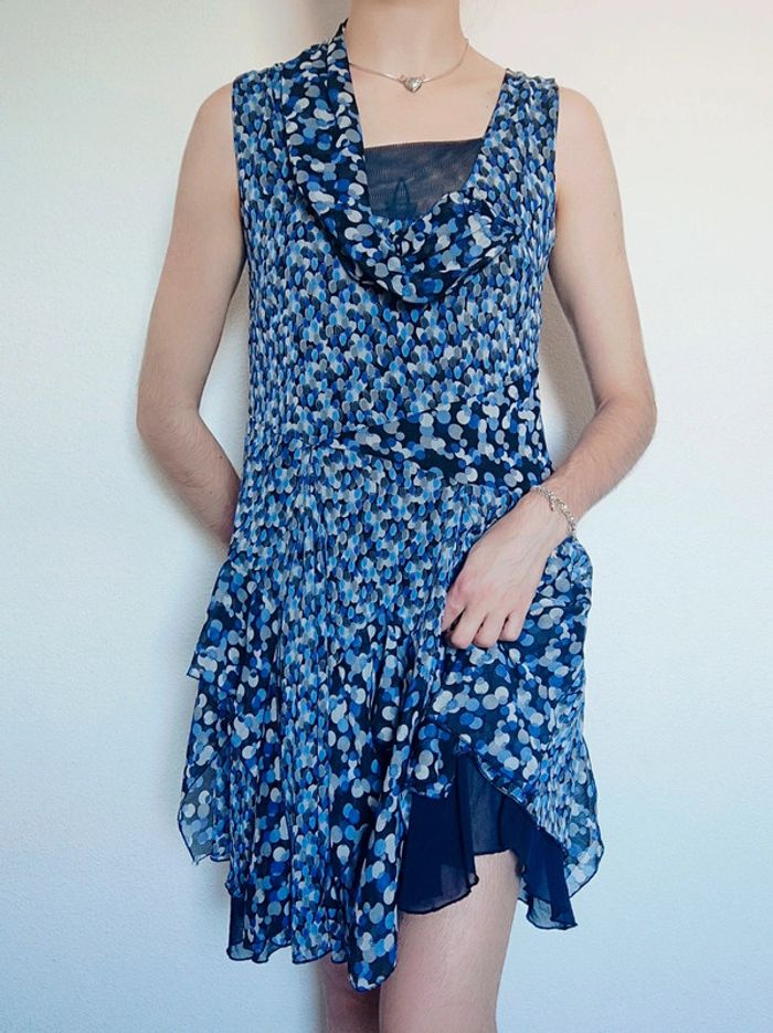Robe asymétrique pois volant bleu vintage 🇫🇷 Fun Kiwi II - 40/L - photo numéro 1