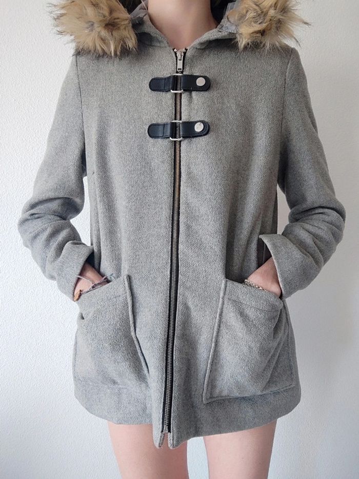 Manteau veste duffle-coat gris laine fourrure / Jennyfer - 38/M à 40/L - photo numéro 11