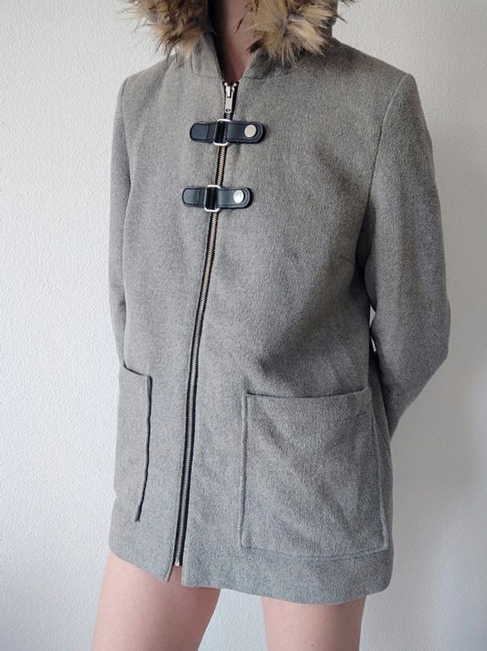 Manteau veste duffle-coat gris laine fourrure / Jennyfer - 38/M à 40/L - photo numéro 8