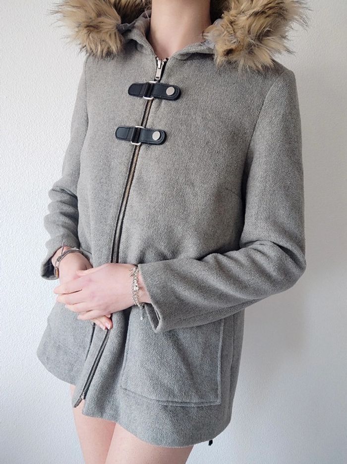 Manteau veste duffle-coat gris laine fourrure / Jennyfer - 38/M à 40/L - photo numéro 2