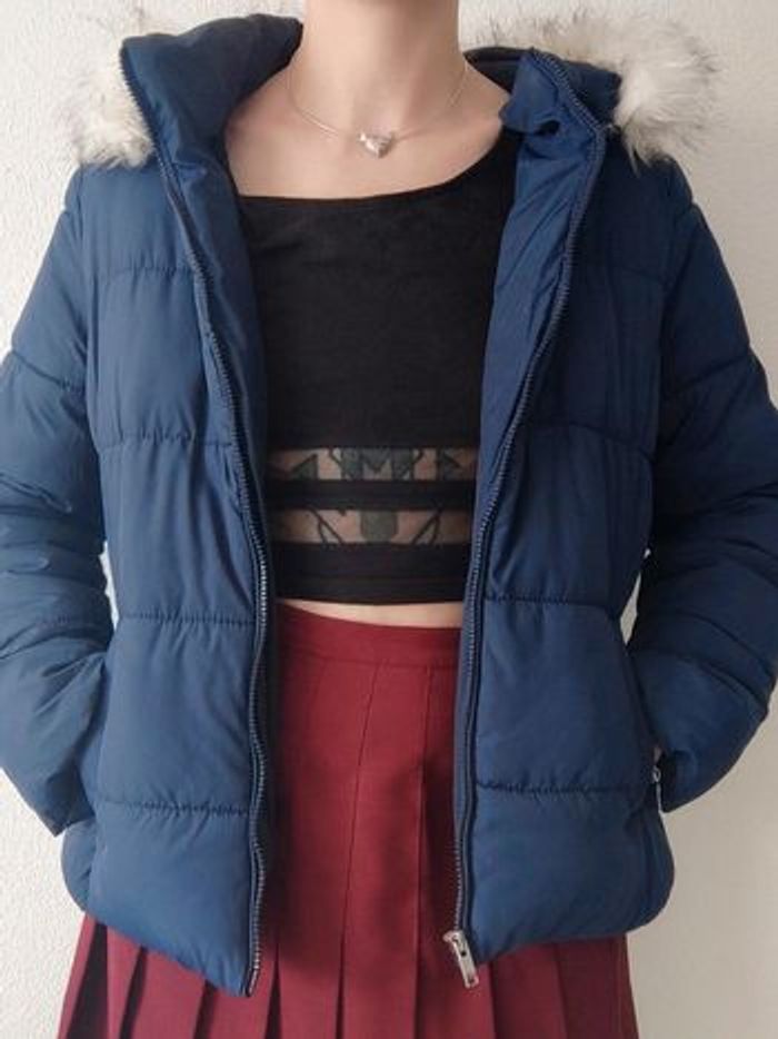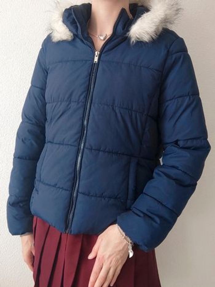 Doudoune bleu foncé capuche fausse fourrure / Gémo - 36/S à 38/M