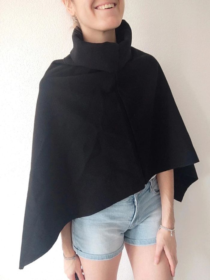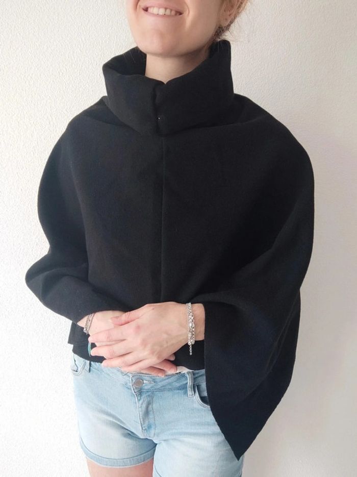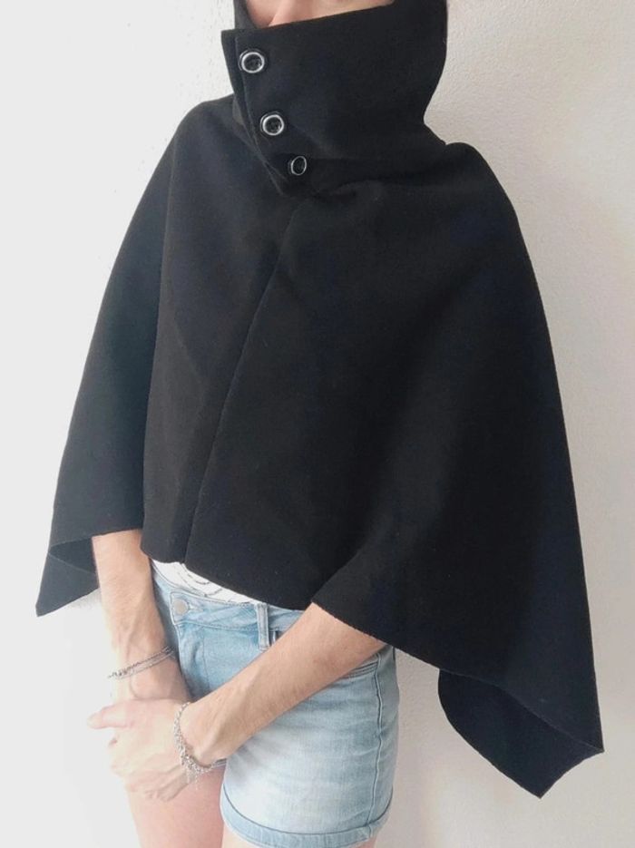 Manteau cape poncho épais noir boutons - 34/XS au 40/L