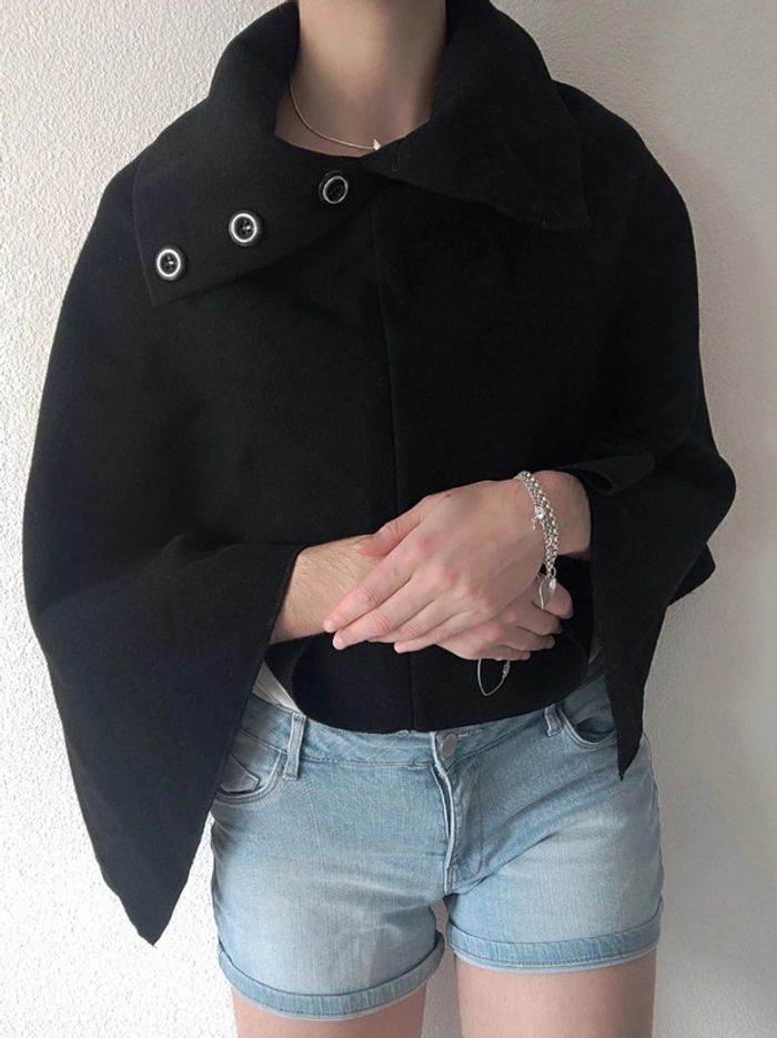 Manteau cape poncho épais noir boutons - 34/XS au 40/L - photo numéro 7