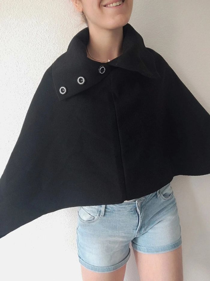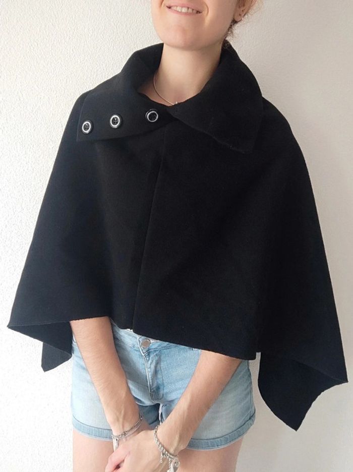 Manteau cape poncho épais noir boutons - 34/XS au 40/L - photo numéro 10
