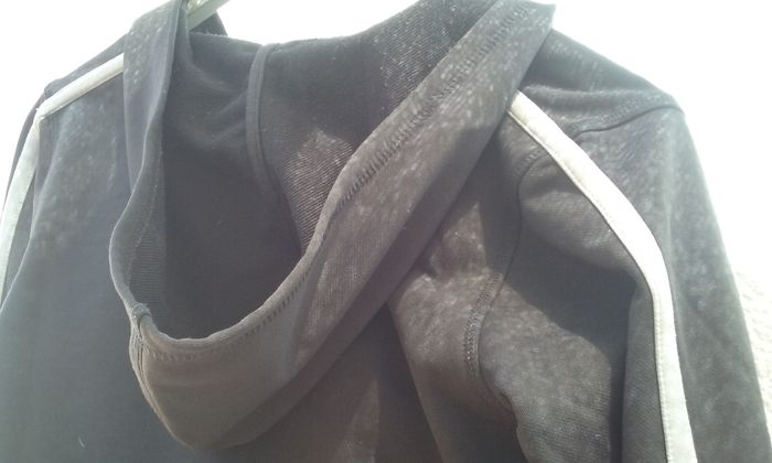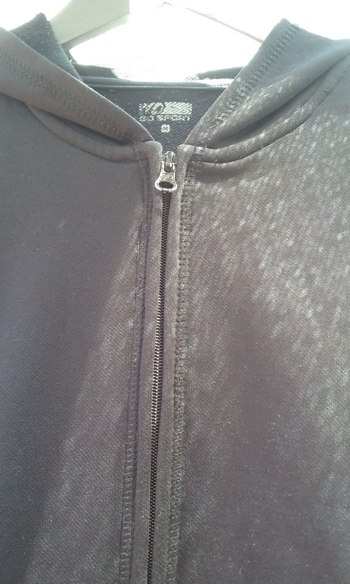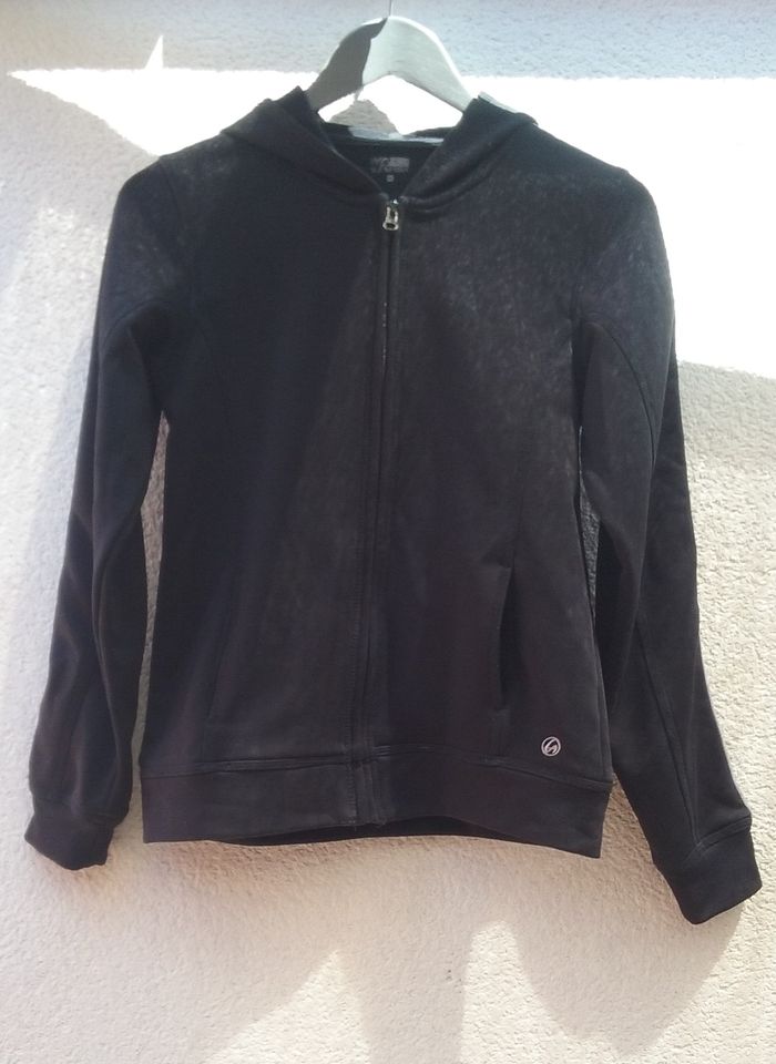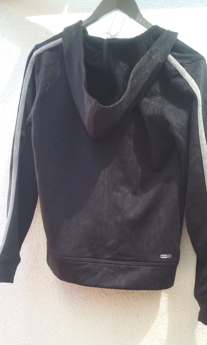 Sweat Activ Dry, 2 poches, coloris noir et gris, T36/38. Il manque un peu de peinture sur la tirette du zip.