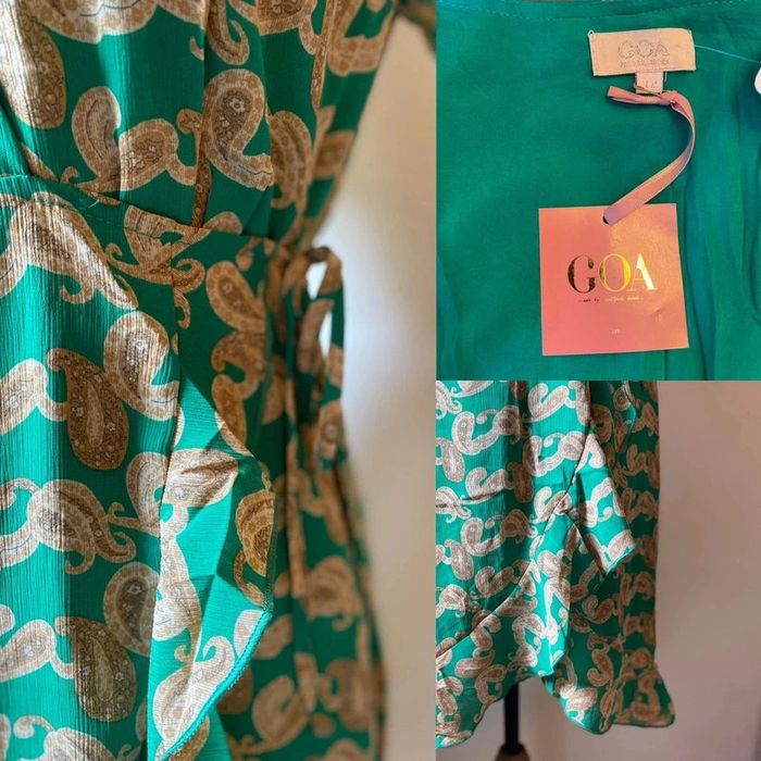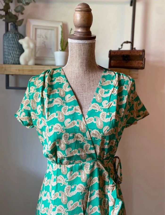 Robe verte portefeuille motif paisley taille 2 - Goa Paris - photo numéro 2