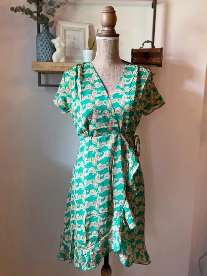 Robe verte portefeuille motif paisley taille 2 - Goa Paris - photo numéro 1