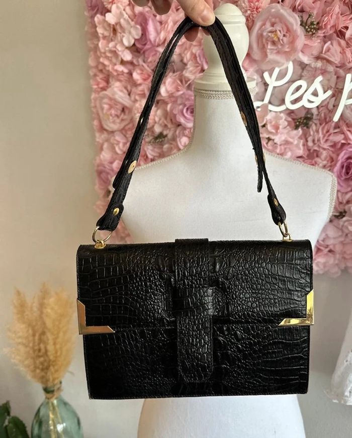 Sac porté épaule ou à main en cuir croco vintage, fabriqué en France - photo numéro 1