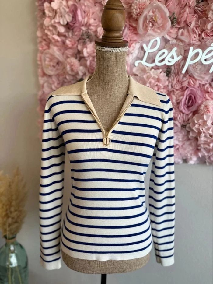 - Col chemise zippé contrasté - Manches longues - Coupe régulière - La laine choisie garantit le respect du bien-être animal et une meilleure gestion des pâturages.