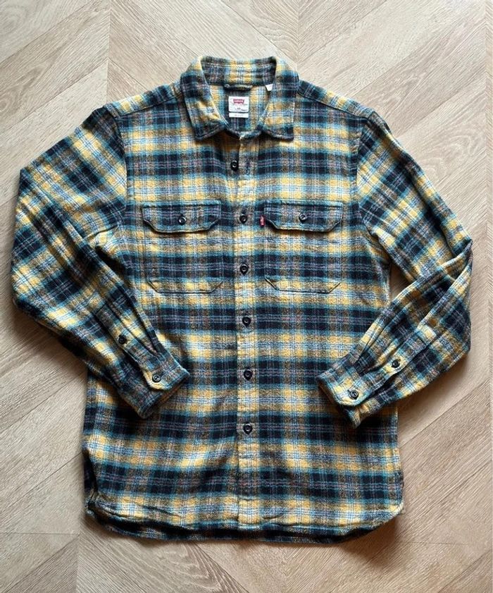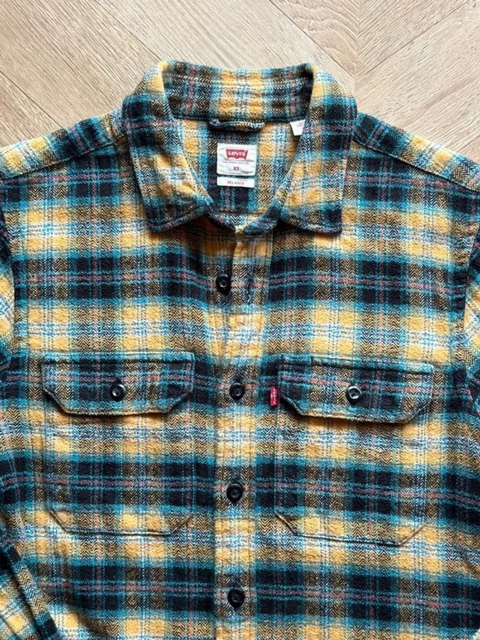 Chemise Levi’s modèle Jackson Worker. Imprimé à carreaux jaune et vert. Fermeture à boutons. Coupe décontractée. Pour homme. Coupe décontractée, en très bon état bien que déjà portée. La taille XS convient bien. • 100 % coton • Fermeture : boutons • Coupe décontractée • Manches longues • Longueur 65 cm, aisselle 50 cm, épaule 41 cm, longueur bras 57 cm.