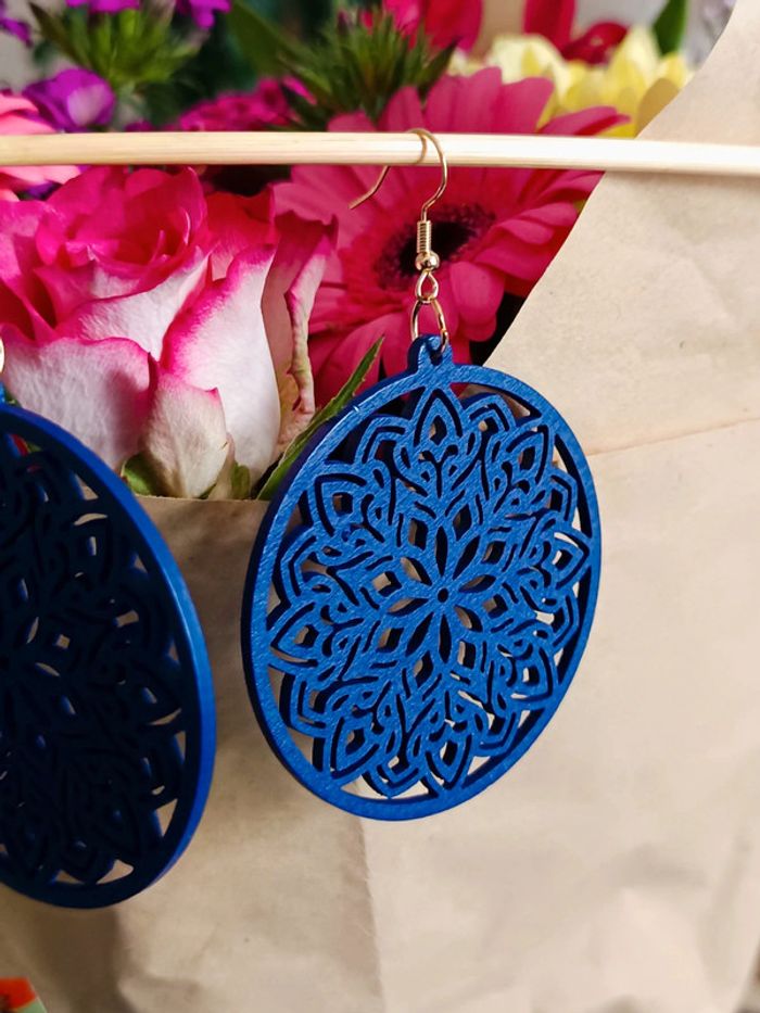 Superbes boucles d’oreilles bois couleur bleu électrique style rosace. 💎 Légères,féminines et très tendance, elles apporteront une touche chic à toutes tes tenues, du quotidien aux occasions spéciales. Hauteur 8 cm 🌸 En parfait état, jamais portées. 📦 Envoi rapide et soigné #bouclesdoreilles #bijouxfemme #lookbohème #bijouxtendance