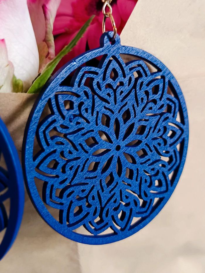 Boucles d'oreilles bois bleu électrique rosace - photo numéro 1
