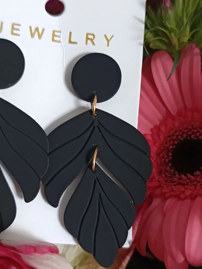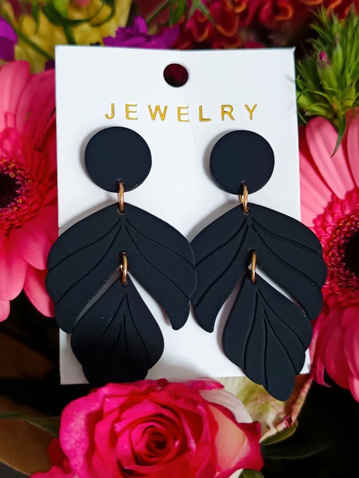 Boucles d'oreilles feuilles noires - photo numéro 1
