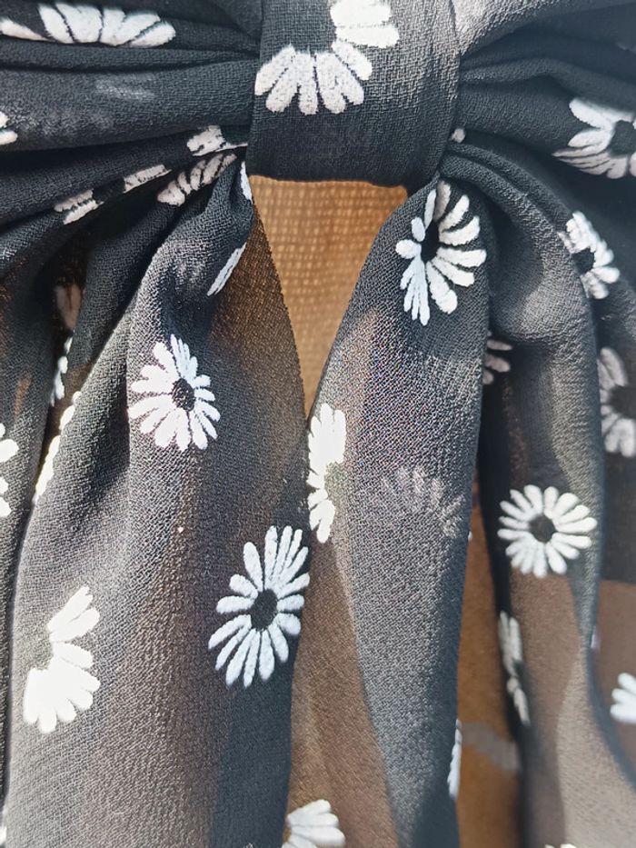 🌼 Jolie pince à cheveux ruban noir imprimé marguerites 🌼 Son tissu léger et son imprimé fleuri en font un accessoire parfait pour les beaux jours. Idéale pour les chignons, demi-queues ou simplement pour habiller une coiffure. 📏 Taille environ 15 cm de large et 25 cm de longueur Couleur : noir avec marguerites blanches ✨ État : neuve, jamais portée 📦 Envoi rapide et soigné ! #accessoirecheveux #pinceacheveux #noeudcheveux #stylebohème #fleurs #vintedaddict #été2025