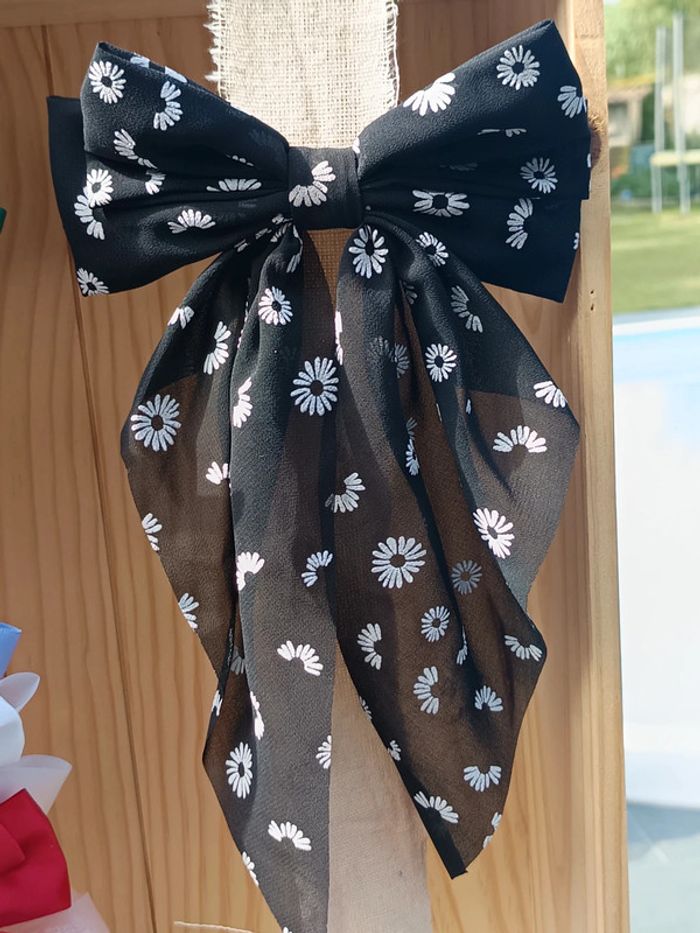Pince à cheveux nœud noir marguerite - photo numéro 1