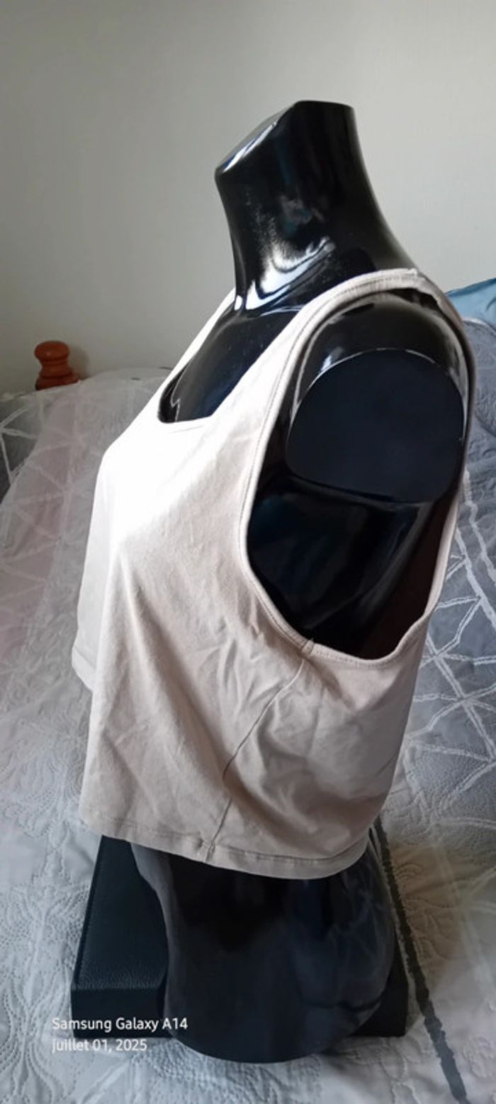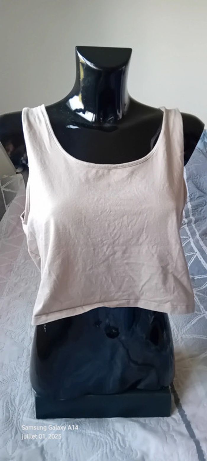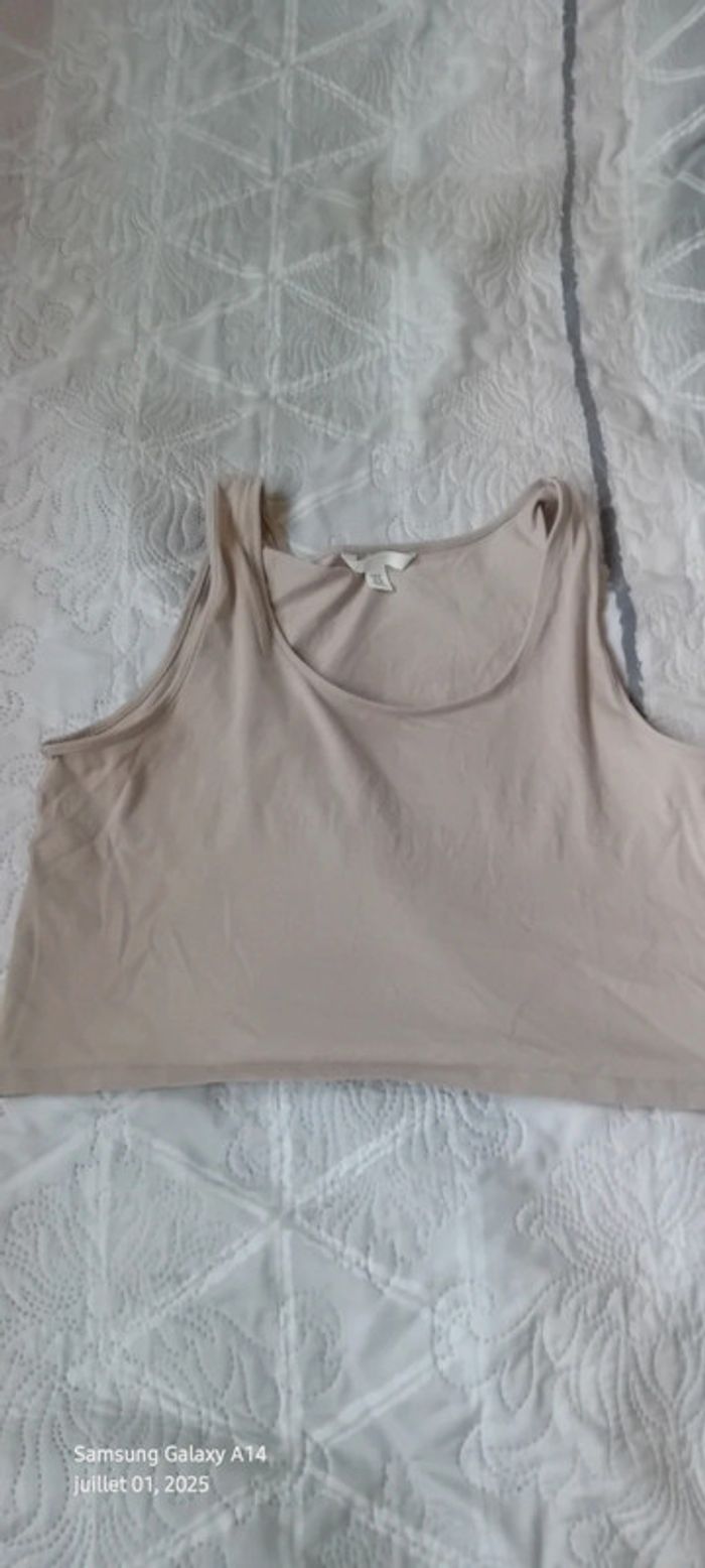 Haut court débardeur épaules dénudées col rond en coton et elastanne extensible couleur beige clair longueur 45 cm largeur aisselles à aisselles 48 cm porté quelques fois en bon état ⚠️ juste légères peluches par endroit dues aux lavages #midole #midolefemme42 #midolefemme #hautcourtfemme42 #debardeurfemme42 #hautepaulesdenudees #beige #h&m